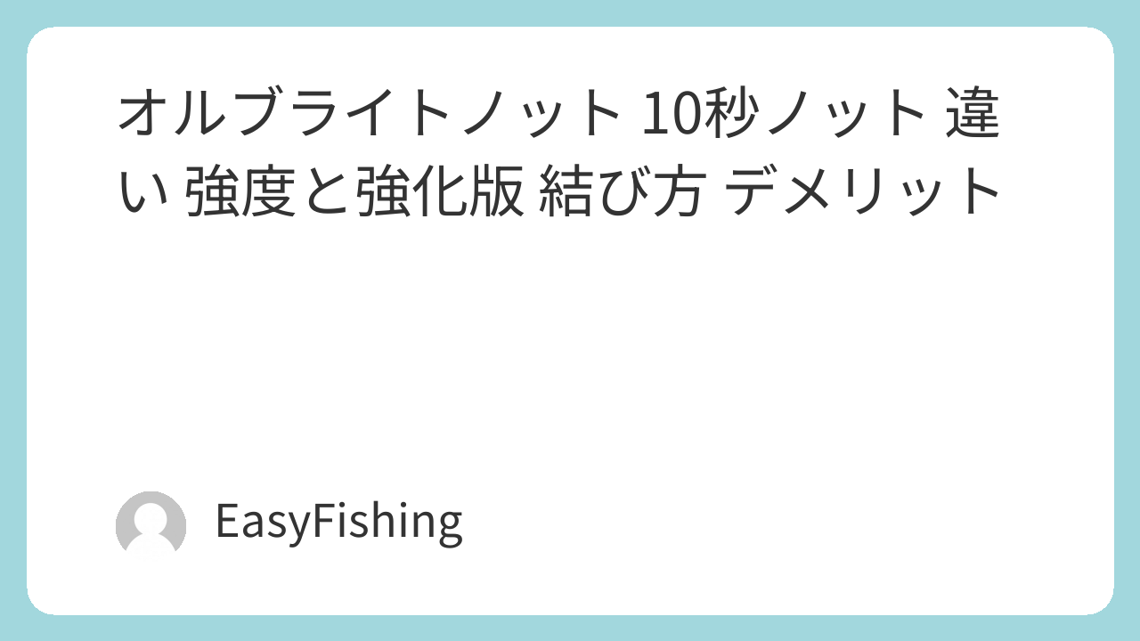 10秒ノットのオルブライトノットは1分かかり強度が低いので、同じ位の時間でできるEasyFishingノットver2がおすすめです。