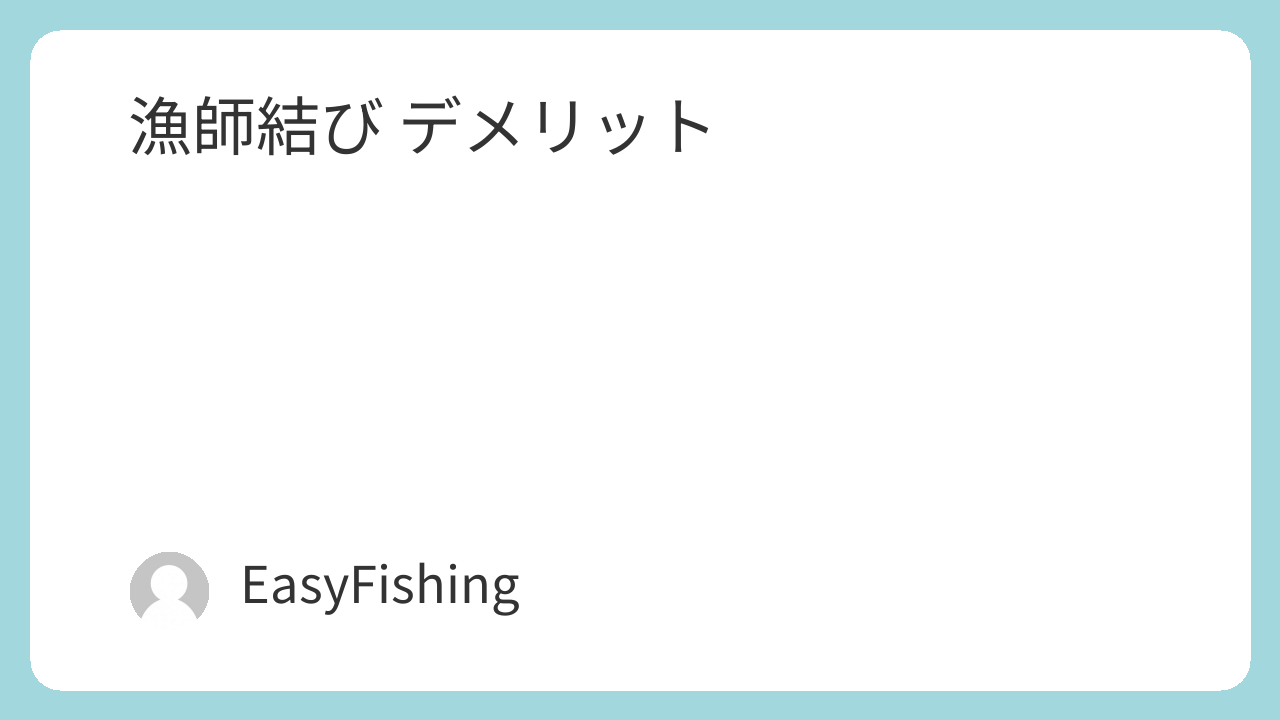 - 素材特性とのミスマッチ: 漁師結びはもともと太いナイロンテグスなどで強度を出すための手法が多く、近年の高硬度・低伸度なフロロカーボンラインの特性とは理論的に相性が悪い側面があります。