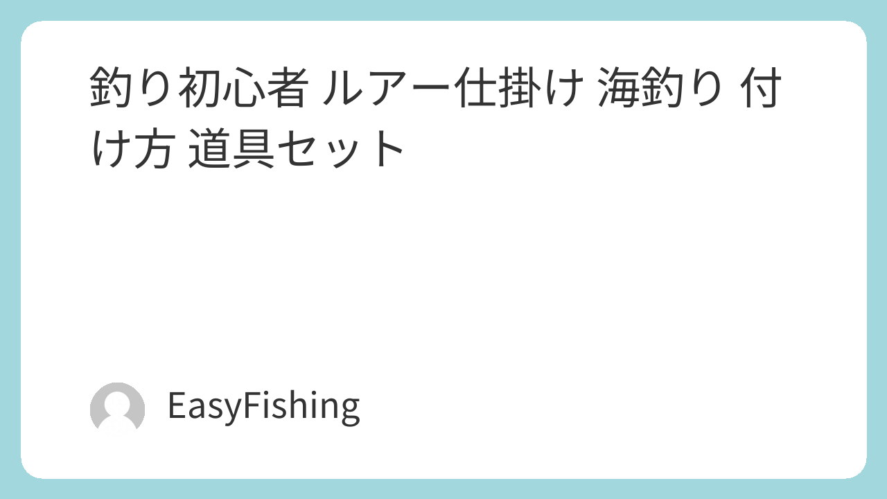 6. 初心者向け推奨セッティング例(シーバス・ライトゲーム等)